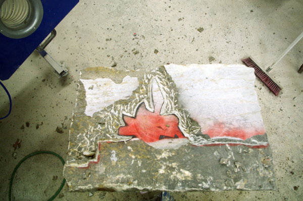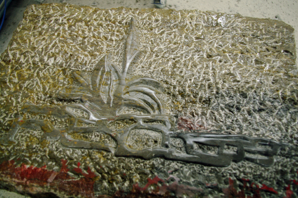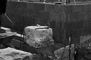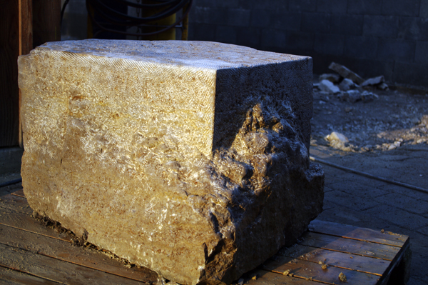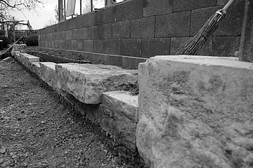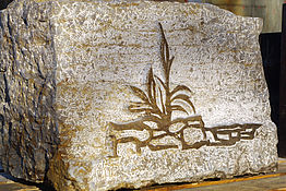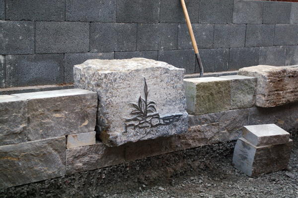 Mauerelement mit Firmenlogo